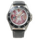 Watch, Stainless Steel Black Leather