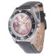 My husband loves the watch, he likes the dial, the graphics, the band, and it keeps perfect time.
