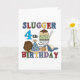 The little slugger will love these cute baseball theme 4th birthday T-shirts, bodysuits, cards, stickers, tote bags, or other item!