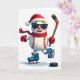 Imagine a Christmas greeting card that combines the joy of the holiday season with America's favorite pastime, baseball! The main design features a round, light-colored baseball adorned with a string of colorful holiday lights in red, green, blue, yellow, and orange. One blue bulb on the string is glowing brightly in the center, adding a festive touch. The baseball is topped off with a classic red and white Santa hat, completing the playful and cheerful look. The text on the card appears in a fun and whimsical font, placed strategically to complement the overall design. Spread holiday cheer with this unique and delightful card, perfect for any baseball fan 🎅🏼🎄🎁!