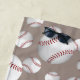 This sporty baseball themed beach towel features a pattern of varied size baseballs on a stone coloured background - player name and jersey number are customisable - by katz_d_zynes