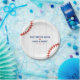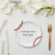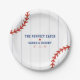 Red, white and blue baseball / softball wedding paper plates with pinstripes and stitches. Personalise it with your event details. Great for sports fans.