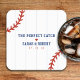 Baseball Softball Sport Heart Pinstripe Wedding Square Paper Coaster