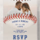 The perfect catch baseball all in one wedding invitation with couple photo. Personalise it with your wedding details, names, and a couple photograph. Great for sports fans or athletes.