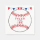 Baseball Sports 1st Birthday Napkin / Cute birthday party napkins for a 1st birthday party in a baseball theme. The design has a baseball and bunting flags in red, white and blue colours. Personalise this birthday party napkin with child`s name.