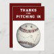 Creative baseball themed thank you card. Edit text to personalise.