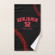 Hit a home run with this personalised baseball towel, designed by The Arty Apples. Featuring a classic white background with red stitching, this sporty design can be fully customised with the player’s name, team name, and jersey number — making it an ideal gift for players, coaches, or baseball fans.