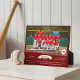 Celebrate your season with this personalised baseball player and their baseball team photo plaque, designed with a bold half-tone navy background and faux woodgrain texture for a classic sports look. Showcase your team photo above a woodgrain baseball bat graphic personalised with your team name, and highlight the callout player’s jersey number on a baseball graphic with their name in a banner design. Add your season year, team roster, and coaching staff names to create a lasting end-of-season gift or team keepsake for players, coaches, and families. Perfect for Little League, high school, or travel ball teams. Please note: all colours can be changed to match your team's colours. Design by Moodthology Papery