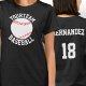 Create your own personalised women's baseball t-shirt by typing in your team (or school) name on the front, and player name and jersey number on the back. You can also delete the placeholder text and leave text boxes on the back blank if you prefer. The colour of the shirt, currently set on black, can also be changed to match your team colours.