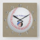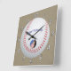 A great clock for all baseball fans -- young or old. The design features a large baseball image on a beige, textured background with placeholders for a name and a small photo. The name text is easily changed by using the template. For other desired changes (different type font, colour, size or placement) select "Personalise this template" then select "Edit using Design Tool." Also use the design tool if you wish to change the size of the baseball image. Check out the options section on the right for different clock styles and for a different colour of clock hands (black or grey).