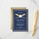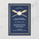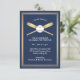 Compliment navy blue and gold invitations with elegant baseball themed reception / party details enclosure cards. All text is simple to customise or delete, making it suitable for any type of event with a reception following a service or ceremony. This card template also includes space on back for additional celebration details of your choice such as directions, website, special requests, revp, masking & social distancing guidelines, covid pandemic safety measures, etc. Design features a navy blue, white and gold faux foil border, modern stripes, and classic art deco inspired typography. Please note that gold is printed colour, not metallic foil.