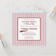 Square, baseball themed wedding invite with pinstripe, red baseball stitch threading. Templates are created for you.