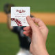 Your baseball themed wedding favours will be a base hit! Close up baseball photo with templates created for you.