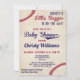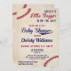 Use our vintage baseball baby shower invitations to invite your guests to your baseball themed baby shower. Classic red baseball threads are over a vintage background and fonts are in navy blue and red. Be sure to look for our coordinating invitation inserts and other baseball themed baby shower supplies.