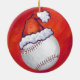 Baseball with Santa Hat on Red Ceramic Tree Decoration