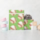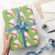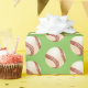 Wrapping paper shown with a sports baseball print on a green coloured background. Customise this item or buy as is.