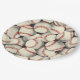 Set of eight 9” paper plates with an image of baseballs with red stitching. See matching candy jar, espresso cup, mug, flask, pitcher, teapot and coasters. See the entire Father’s Day Plate collection in the FOOD/BEV | Dishes section.