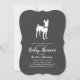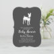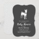 Include the big brother or sister fur baby in the celebration with this adorable Basenji dog baby shower design! Perfect for a puppy lover with a baby on the way. The Basenji is next to an adorable vintage carriage. The chalkboard grey background makes it perfect for a gender neutral or co-ed shower!