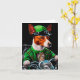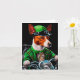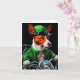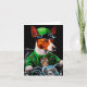 A furry friend behind the handlebars of a shiny green bike, wearing a green Saint Patrick's Day outfit that makes heads turn. The dog is dressed in a festive ensemble, complete with a green bow tie and a matching top hat that sits snugly atop their head. The outfit features intricate designs of shamrocks and leprechauns, making it clear that this dog is ready to celebrate Saint Patrick's Day in style.