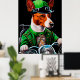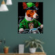 A furry friend behind the handlebars of a shiny green bike, wearing a green Saint Patrick's Day outfit that makes heads turn. The dog is dressed in a festive ensemble, complete with a green bow tie and a matching top hat that sits snugly atop their head. The outfit features intricate designs of shamrocks and leprechauns, making it clear that this dog is ready to celebrate Saint Patrick's Day in style.