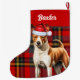 Basenji Dog Red and Green Plaid with Name Large Christmas Stocking