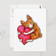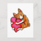 From Andie's original ink and coloured pencils subject illustration featuring a red/white Basenji squeezing a heart shaped pillow. (c)2014 Andie.