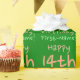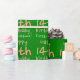 This loving birthday wrapping paper design features a message like "Happy 14th birthday, First-Name!", where the name and birthday number can be personalised. The background is coloured green. Wrapping paper like this could perhaps be used to wrap gifts being given to celebrate somebody’s birthday. [~Z0000243]