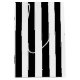 A gift bag featuring black and white vertical stripes.