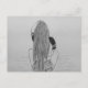 Postcard featuring a pencil drawing of a teenage girl sitting on her bed and flipping through her hair.