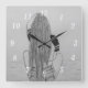 Wall clock featuring a pencil drawing of a teenage girl sitting on her bed and flipping through her hair.