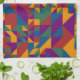 Abstract geometric pattern consisting of basic triangular and square shapes in dark colours and varied sizes.