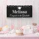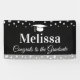 Graduation banner is easily personalised. Pick Your school colour and adjust the text for your graduates name. High School, college, university, trade school, preschool, middle school