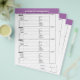A great design to organise your passwords. This design includes an area to add your name at the top. Other areas included basic password information for username and password. You can change the colour bar on the top.