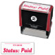 This rubber stamp design features the message "Status: Paid" and a line where a payment date can be written. It could perhaps be used to indicate that a bill or invoice has been paid.