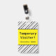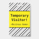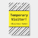 This respectable badge design features the message "Temporary Visitor!", and a customisable company name or other custom message. A badge like this could be used to identify that somebody at a workplace or business is an authorised guest/visitor. [~Z0000307]