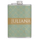 Basil Green Gold Quatrefoil Personalised Hip Flask