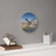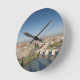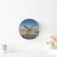 The clock did not take as long to arrive as I thought it might and was extremely well packaged. I didn't do the measurements so I didn't realize it is a little smaller than the average clock but that does not matter (just make sure you check if that's important to you).It is really nifty! It seems very solid and well made not flimsy at all. It has been going well and has kept good time in its few weeks on my wall. Nice product. Gets noticed too! Nicer in real life than the picture but true to the picture