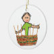 Weaving a wicker basket in basketry depicted by this drawing of a willow weaver with a part completed willow wicker basket in front of them. For basket weaving fans!