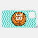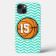 Cool, cute orange basketball design on aqua, turquoise green and white chevron stripes pattern. Personalise with jersey number! Great gift for basketball player or sports fan!