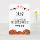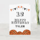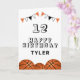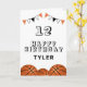 Basketball Ball and Flags Kids Birthday Card. The design has basketball balls and birthday party bunting flags in orange, black and white colours. Add your name, age and text and make your own birthday card. Great for boys and girls who love basketball.