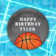 Basketball ball Chalkboard Photo Birthday Banner. Cute boy`s basketball birthday party banner. The design has a basketball. Add your child`s name and a photo.