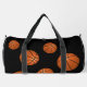 Basketball Ball Fun Sports Player Name Number Duffle Bag. The design has basketball balls on a black background. Add your name and player's number.