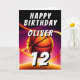 Basketball Ball Hoop it up Sports Happy Birthday Card. This modern design has the text "Happy birthday", a custom name, age and a basketball ball on a vivid and vibrant background. The basketball theme makes it perfect for a basketball fan's birthday. Personalise with your name, age and birthday wishes inside the card.
