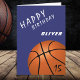 Basketball Ball Sports Pattern Modern Happy Birthday Card. Modern basketball birthday card for anyone who loves basketball. Basketball ball on the dark purple colour. Personalise with your name and age on the ball.