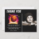 Basketball Ball Sports Photo Birthday Thank You Card. This modern design has a basketball ball on a vivid and vibrant background. The basketball theme makes it perfect for a basketball fan's birthday. Add your photo and personalise the text.