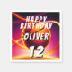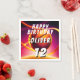 Basketball Ball Vivid Sports Happy Birthday Napkins. This modern design has the text "Happy birthday", a custom name, age and a basketball ball on a vivid and vibrant background. The basketball theme makes it perfect for a basketball fan's birthday. Personalise the napkins with your name and age.