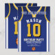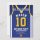 Celebrate your special day with this Basketball Jersey Birthday Invitation, designed for true basketball fans! Featuring a bold jersey design inspired by the iconic purple and gold colours, this invite is perfect for kids, teens, and adults who love the game. Personalise it easily with your name, age, party details, and even team number in just a few clicks. Available in multiple sizes, printed on premium quality paper with a wide range of finishes to match your style. Choose from different paper types, fast printing, and quick shipping so your invitations arrive on time. Whether it’s for a sports-themed party or a Lakers fan celebration, this invite is the perfect way to get your guests excited.