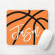 Mouse pad featuring a basketball in black and orange and your name in white. All colours are customisable in the design tool.