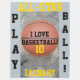 Basketball sports fun. Bluie Grey background with orange basketball in centre on a cool concrete background. Name written in yellow gold colour typography. Personalise Team Number or insert #1. I Love Basketball written in black typography. Play Ball is written in black. Click Personalise and select Background on left-hand side to change colour. Original Photography and Design © 2017, 2018 TamiraZDesigns.