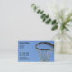 Basketball business cards with great photo of a basketball hoop and text layout you can customise now! Excellent business card for themes related to basketball, sports, equipment, teams, league or professional players.
